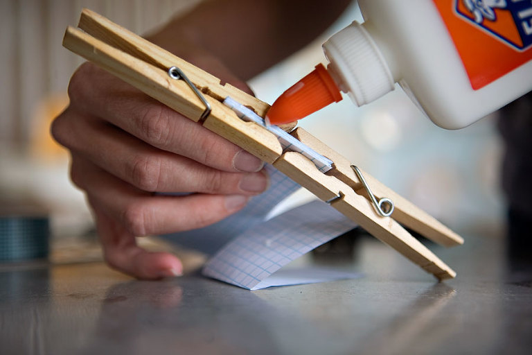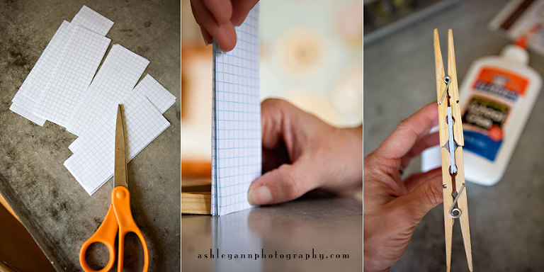 Step 3: Clamp paper using clothes pins