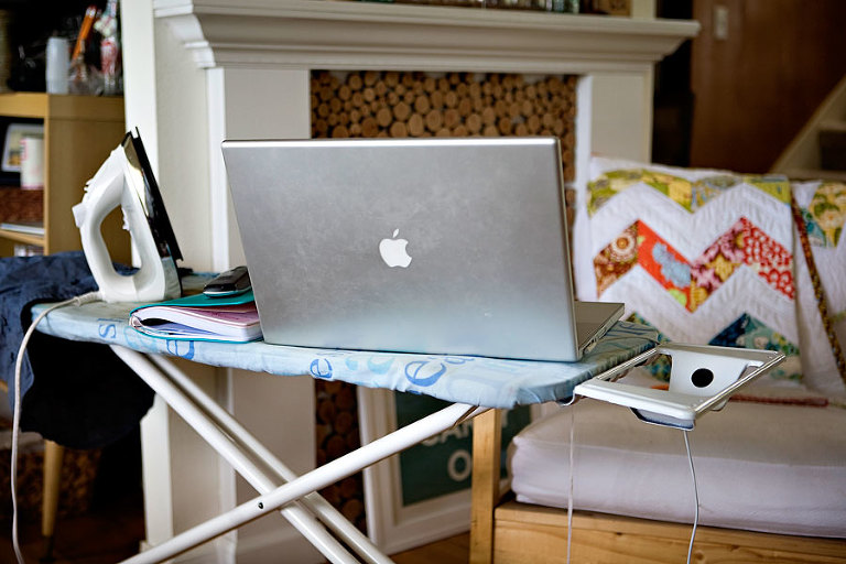 My ironing board became my desk….which either means I am trying to do too much at one time or that if my computer processes pictures SO SLOW that I can iron a dress while I am waiting – I need a new computer. Steve Jobs…are you reading? Please send me a new laptop pronto.
