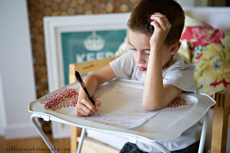 So today I am sharing 10 photos of Biggest Brother doing his spelling homework. Nothing exciting about the activity, but it is a part of his days as a 6 year old. It makes me wonder what he’ll look like when he is 16 and doing homework.