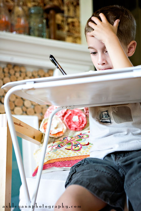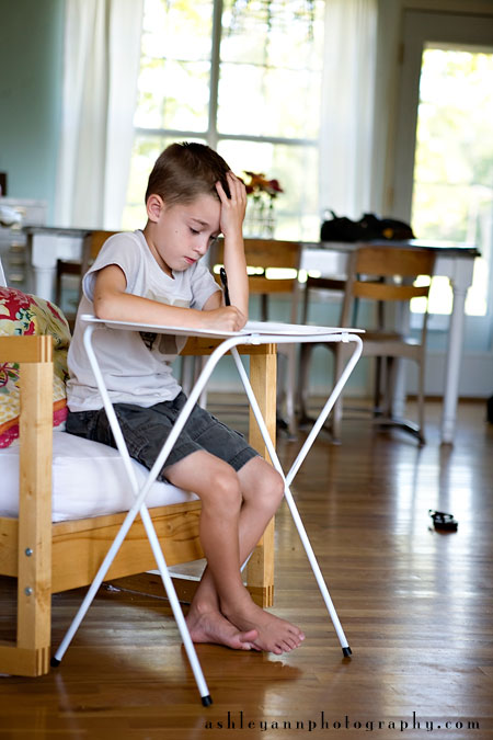 FireCracker makes blog appearances a lot…it seems like the smaller they are the easier it is to get fun pictures of them. At the last SnapShop we talked a bit about older kids. It made me begin to think about Biggest Brother. As I thought about his days and what sets them apart from the younger kids, I wanted to capture those differences. With school in session he doesn’t play as much Legos, but he does have homework. Sometimes we don’t capture the ‘boring’ or ‘uninteresting’ aspects of our days…but I think they are just as important.