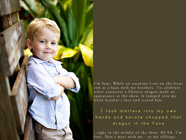 Heather - lol karate chopped the dragon.. awesome. what a great big brother!! cute photos… now i really want to go to hawaii!!