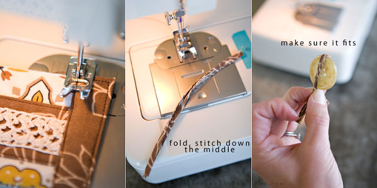 Step 12: Create a fabric loop for the button. I just folded over a long skinny piece of the fabric and stitched it down the middle.